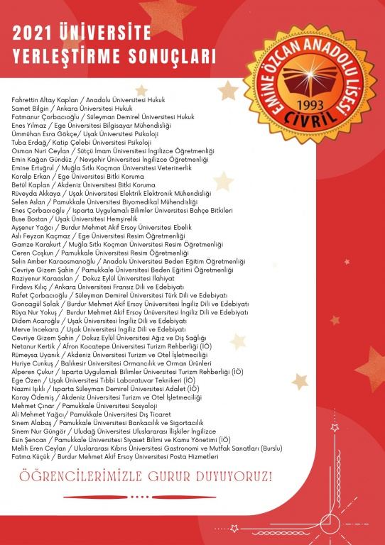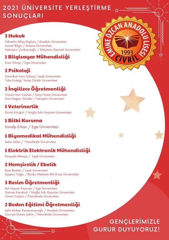 2021 ÜNİVERSİTE YERLEŞTİRME SONUÇLARIMIZ